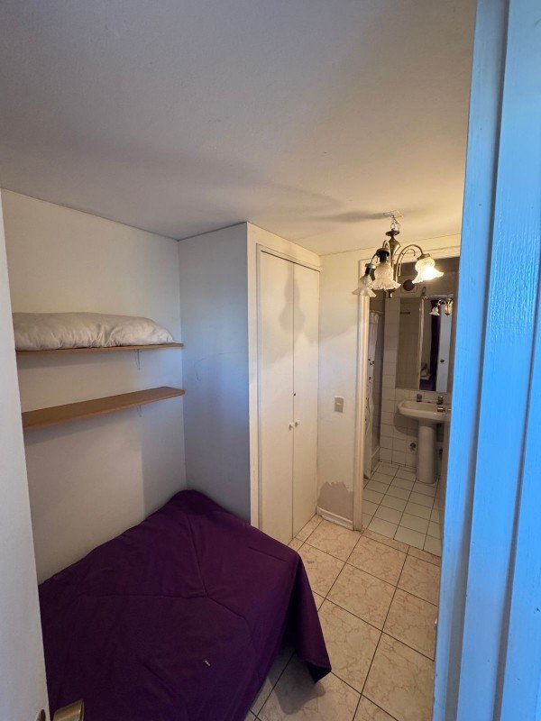 Dormitorio de servicio con cama de 1 plaza y baño en suite